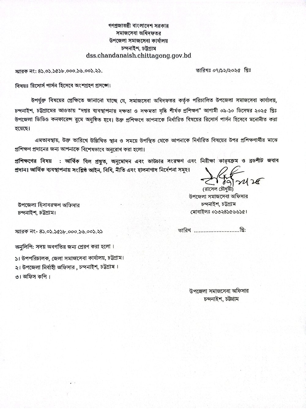 উপজেলা সমাজসেবা কার্যালয় আয়োজিত প্রশিক্ষণ আগামী ০৯ ও ১০-১২-২০২৫ তারিখে অনুষ্ঠিত হবে।